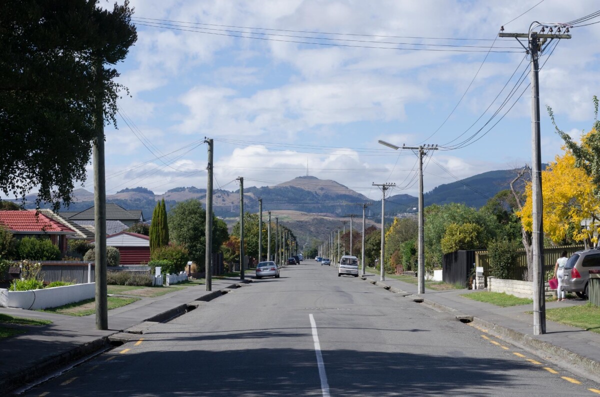 View looking south-east down Checketts Avenue in Halswell towards the Port Hills.