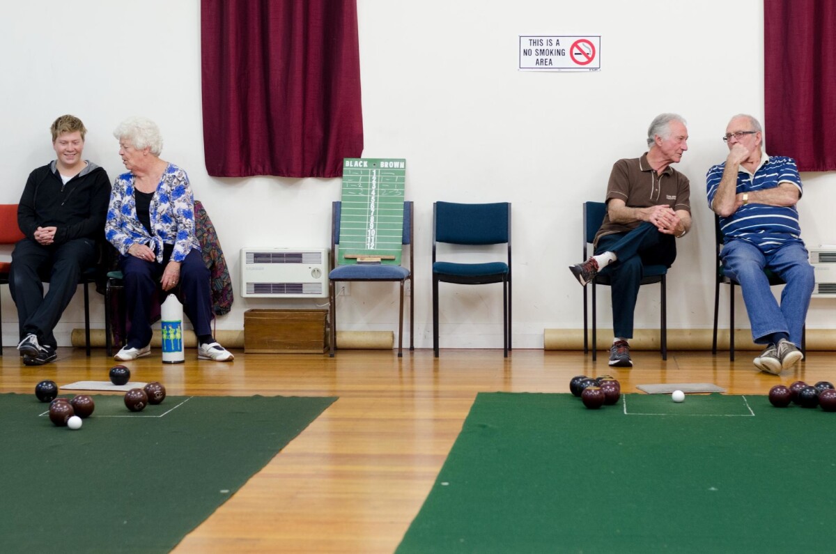 View of a bowls game at the Halswell Indoor Bowls Club, The Halswell Hall, Halswell.