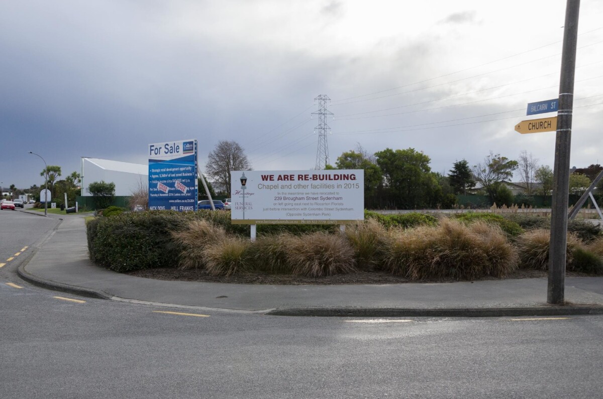 Heritage Funeral Services, relocation sign on the corner of Balcairn Street and Ensign Street, Halswell.