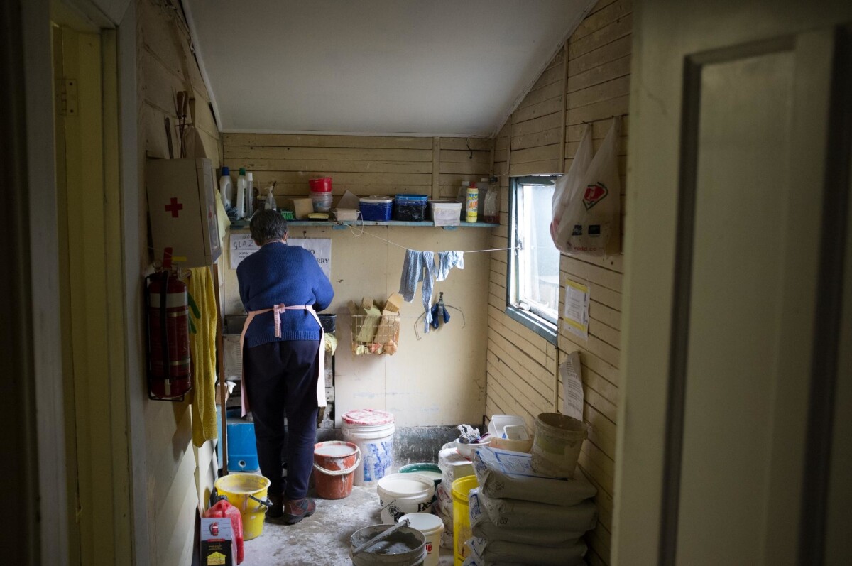 A woman in the wash area at the Halswell Pottery Group at 9 Candys Road, Halswell.