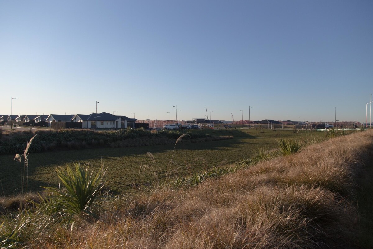 View across to houses under construction at the new subdivision at Wigram Skies.