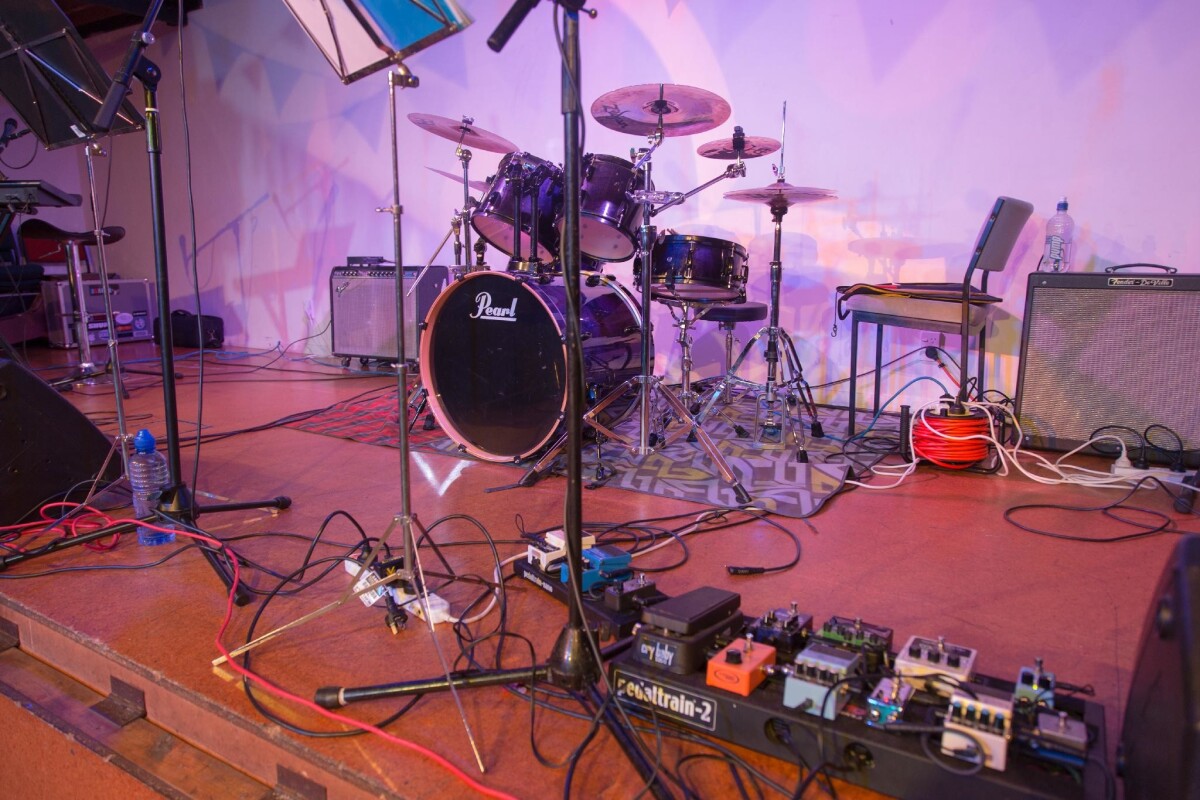 Band instruments laid out before a show at the Halswell Winter Ball at the Halswell Community Hall, 450 Halswell Road.