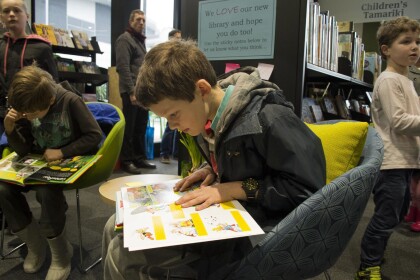 Reading a comic at Ōrauwhata: Bishopdale Library