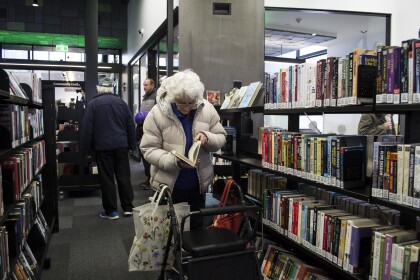 Senior citizen looking through books at the new Bishopdale ...