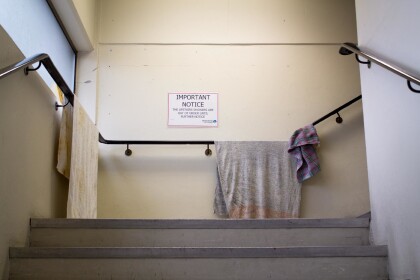 Interior view of the stairs to the community area in the former ...