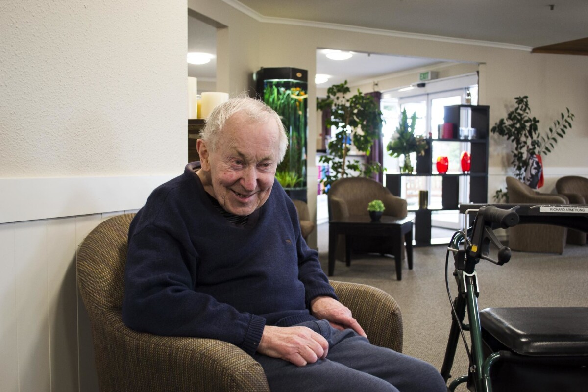 Man at Bupa rest home relaxing at lunchtime at 235 Harewood Road, Bishopdale.