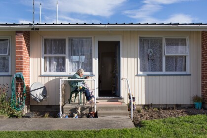 Pam sat outside her flat at Palliser Place, Bishopdale doing her ...