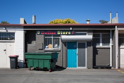 Rear exterior of the Dollar Store at Bishopdale Village Mall, ...