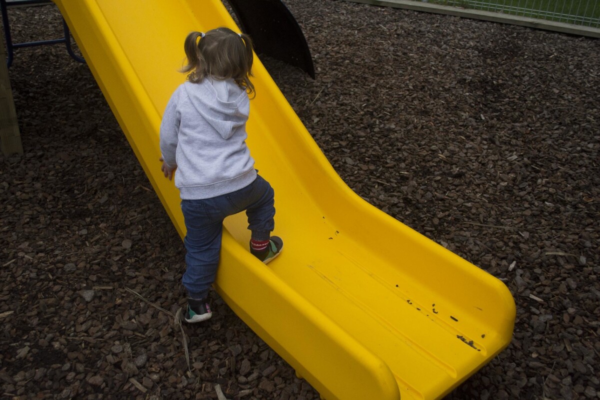 A young child playing on the slide at the Bishopdale Community Preschool.