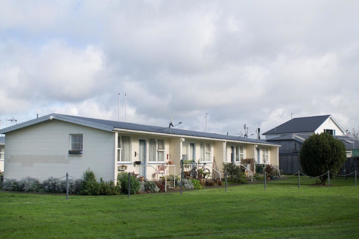 Exterior of council flats on the edge of Bishopdale Park off Palliser Place.