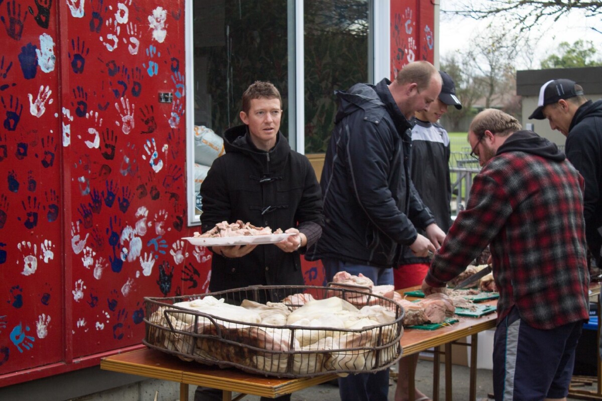 Breens Intermediate teachers serve food cooked in a Hāngi