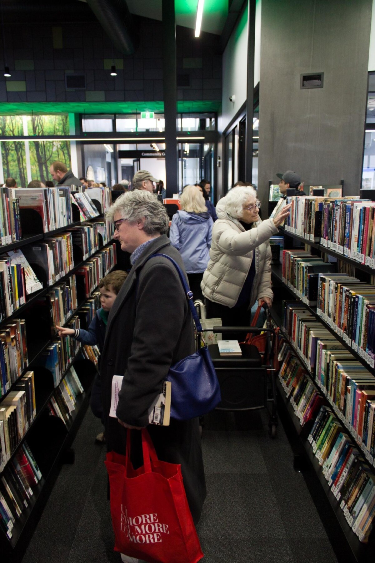 Senior citizen looking through books at the new Bishopdale ...