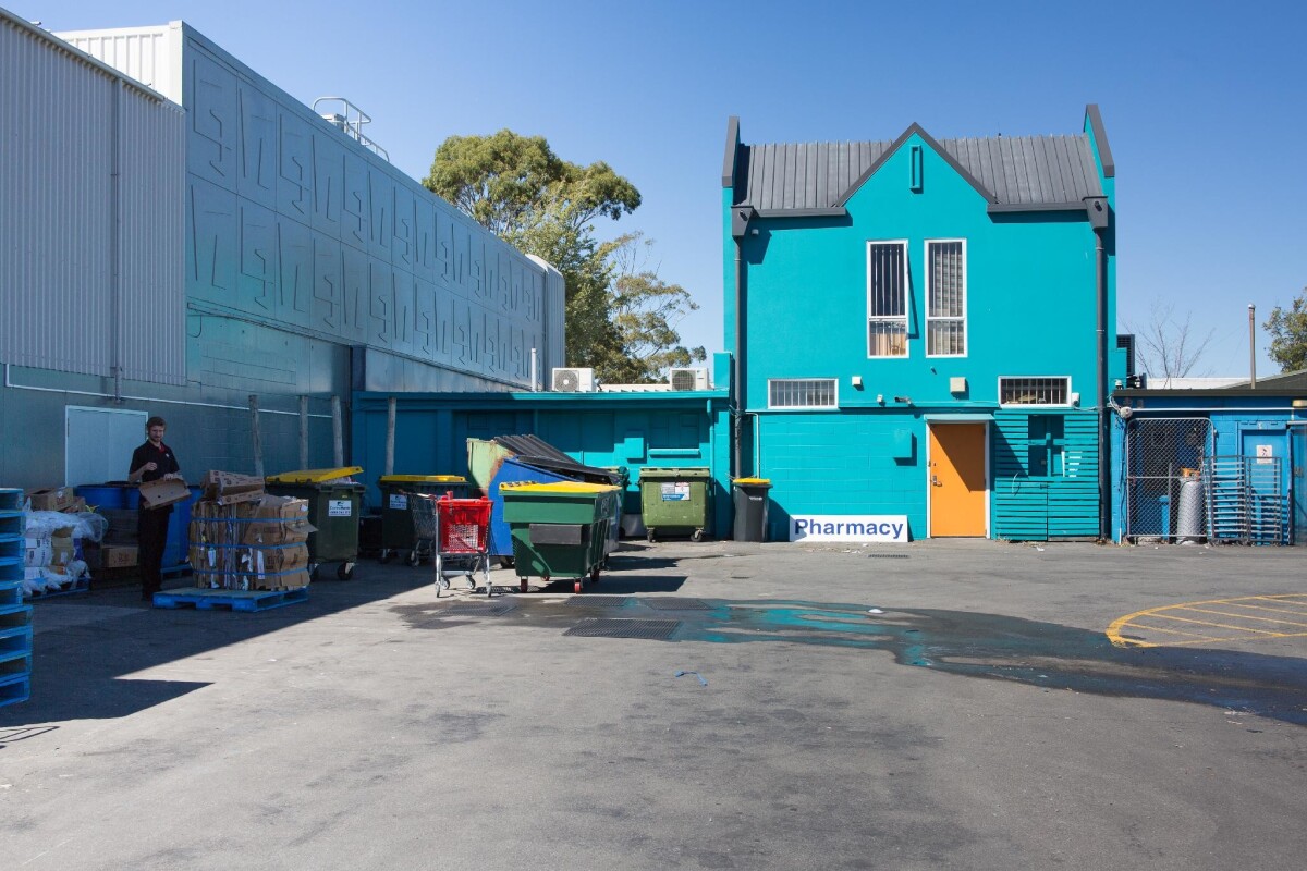 Rear exterior of the Unichem Bishopdale Pharmacy at Bishopdale Village Mall.