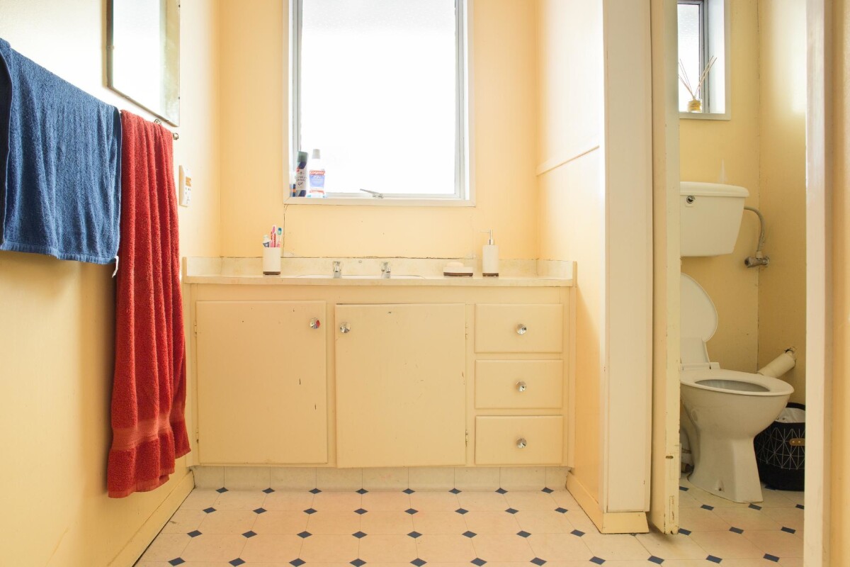 Interior of a bathroom and toilet at Chloe's home on Wairakei Road, Bishopdale.