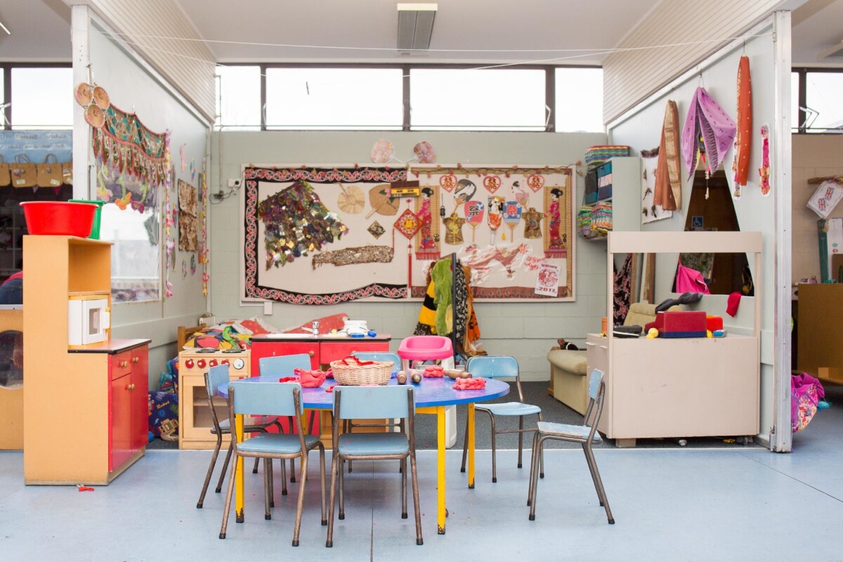 Māori artwork and toys in the interior of Cotswold Preschool and Nursery at 37 Colesbury Street, Bishopdale.