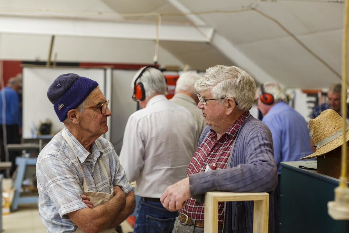 Alan has a conversation with Ernest at the MeNZ Shed at 55 Kendal Avenue, Bishopdale.