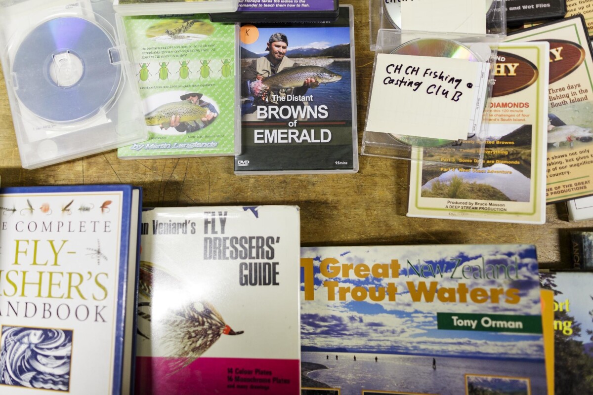 A selection of the reading and watching material available for the members of the Fishing and Casting Club at 37 Colesbury Street, Bishopdale.