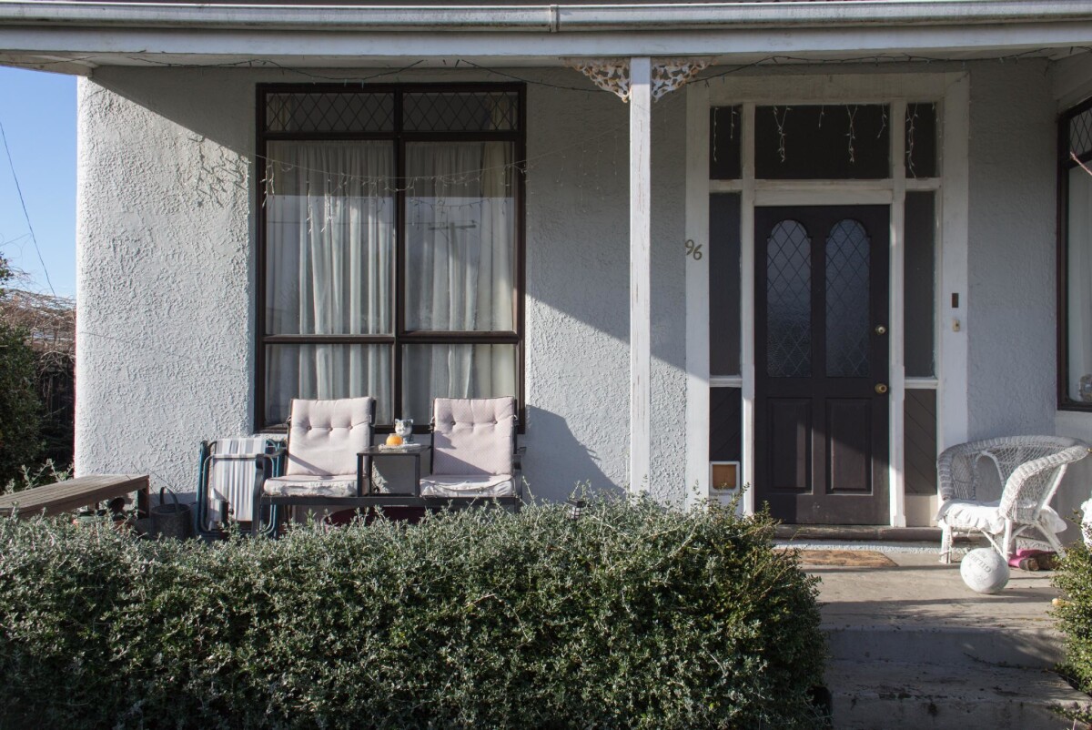 Two deck chairs sit on the porch outside a house at 96 Breens Road, Bishopdale.