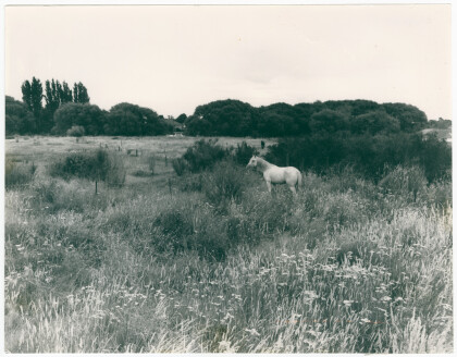 A horse stood on land which has been marked to become Hansen ...