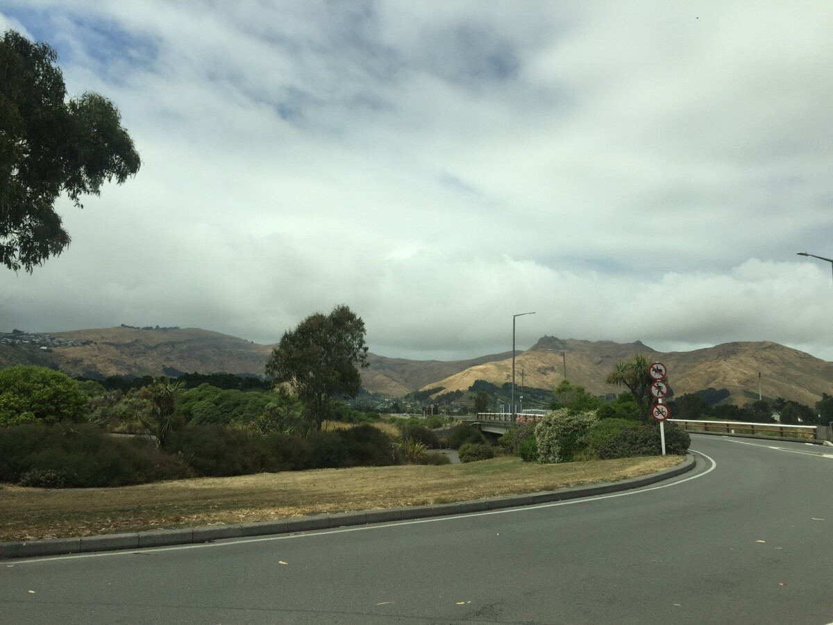 Taken from the roundabout intersecting Ferry Road, Dyers Road and Tunnel Road looking towards the Tunnel Road bridge over the Heathcote River towards the Port Hills.