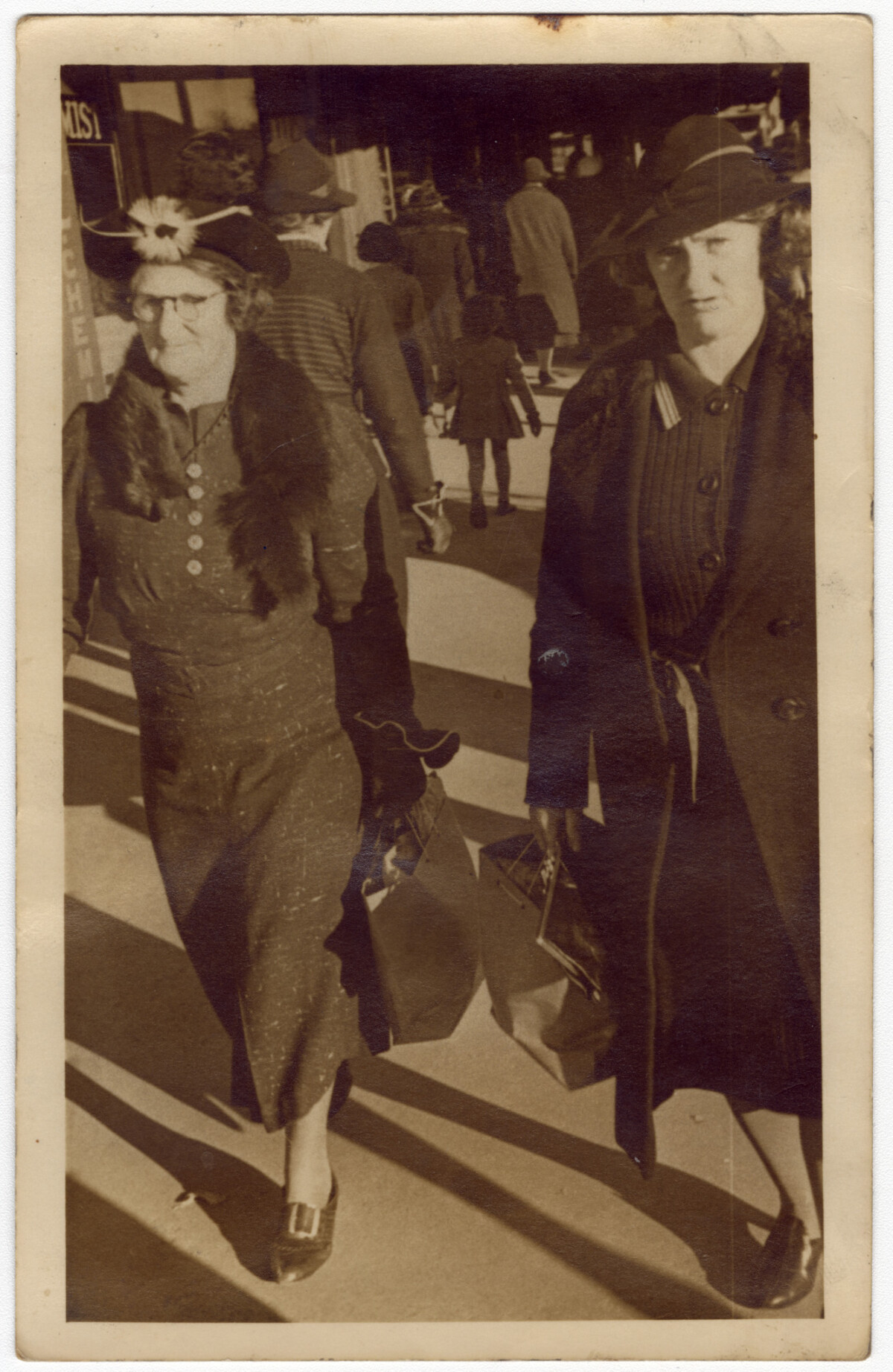 Two women shopping in central Christchurch. "My great grandmother, Flora Excell on the left and my grandmother, Lilian Marker" - Contributor's note