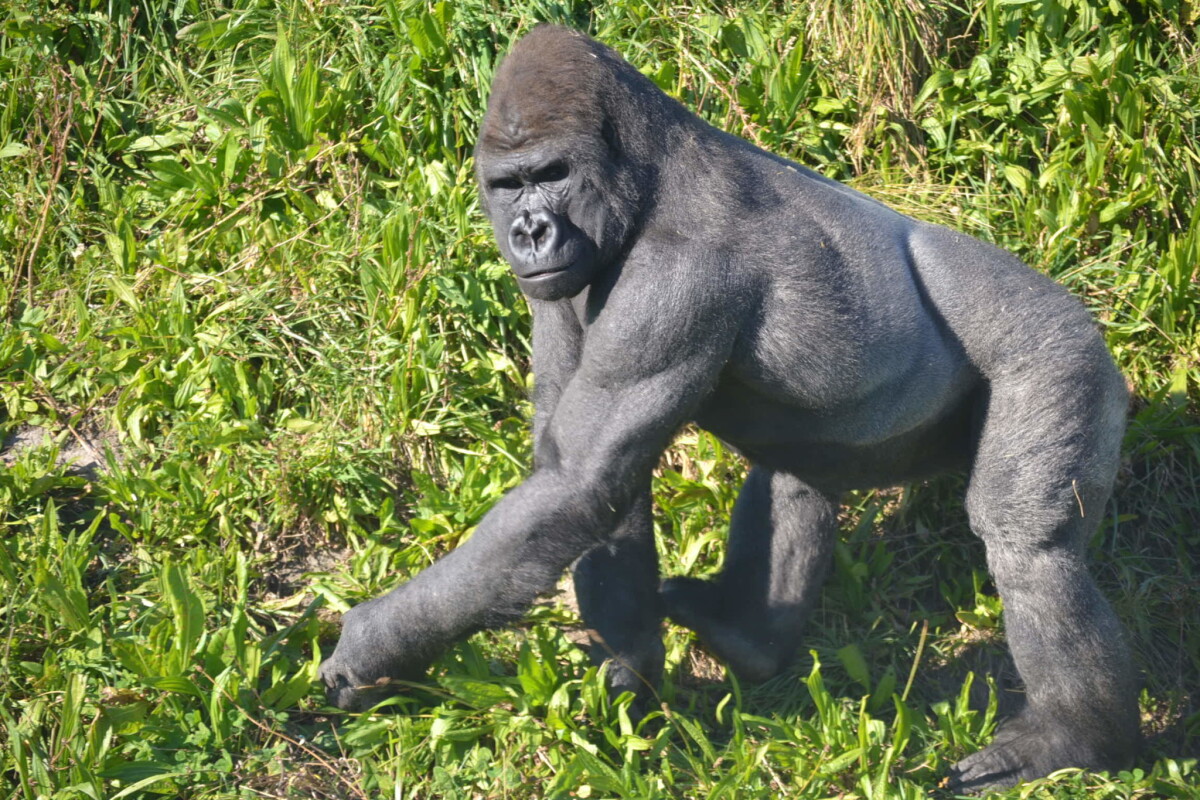 One of the gorillas at Orana Park walking in his enclosure.