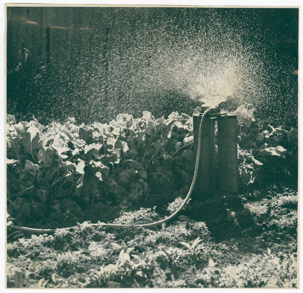 Close-up of a sprinkler in a garden at a house in Bevington Street in Avonhead prior to a tap being turned on elsewhere in the house that causes low water pressure.