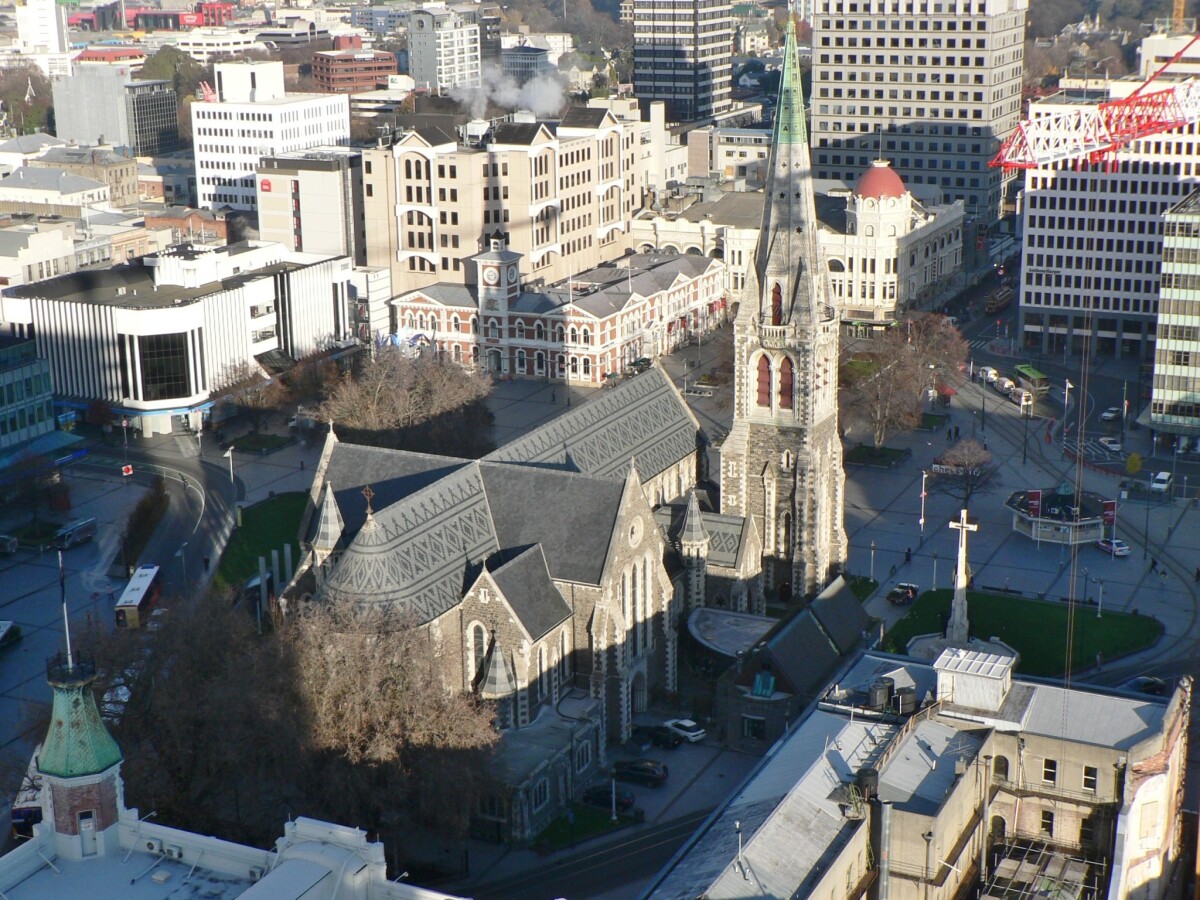 View from the Rendezvous Hotel looking down to ChristChurch Cathedral and Cathedral Square.