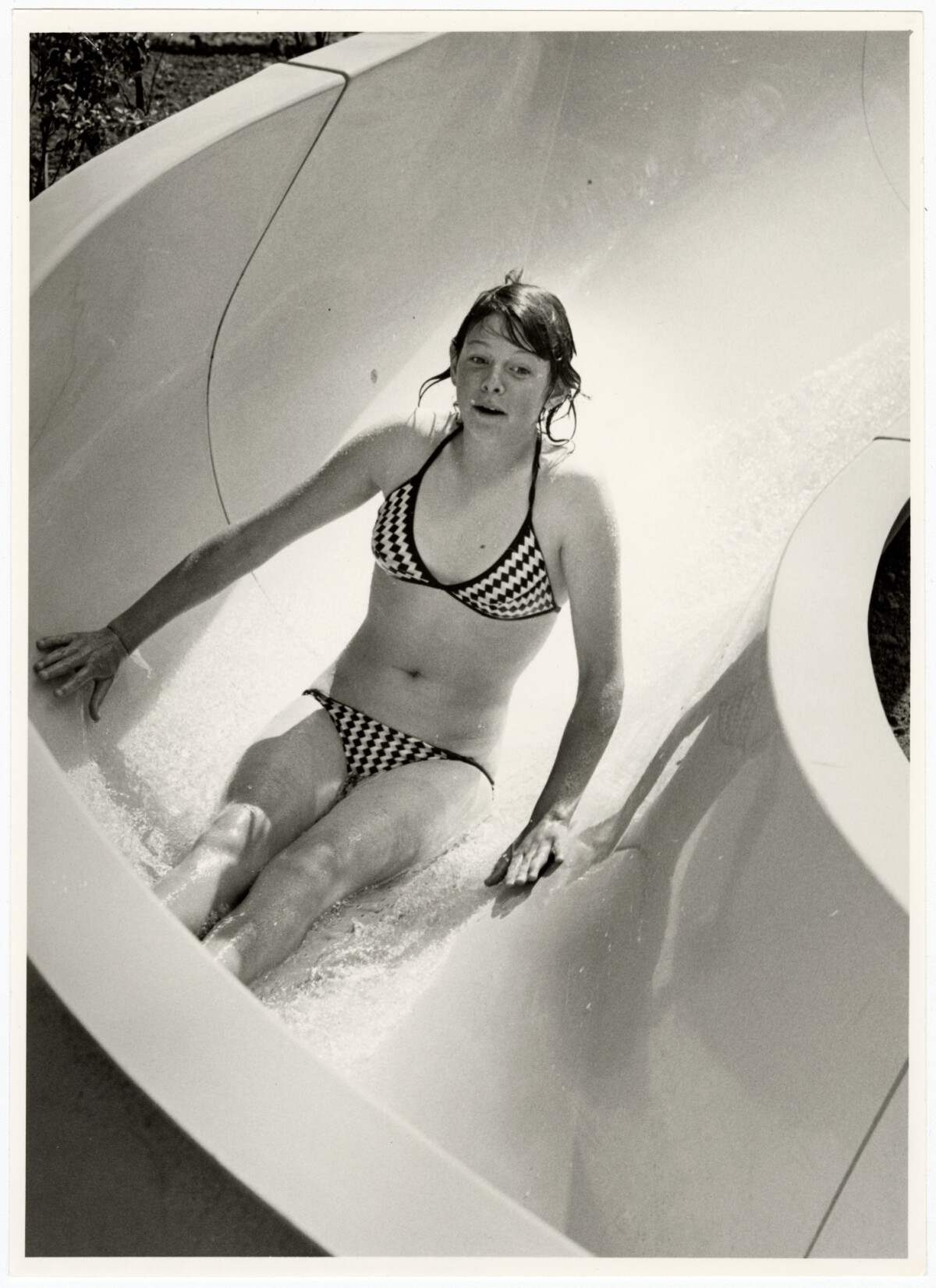 Stephanie Wain on the waterslide at Jellie Park Aqualand.