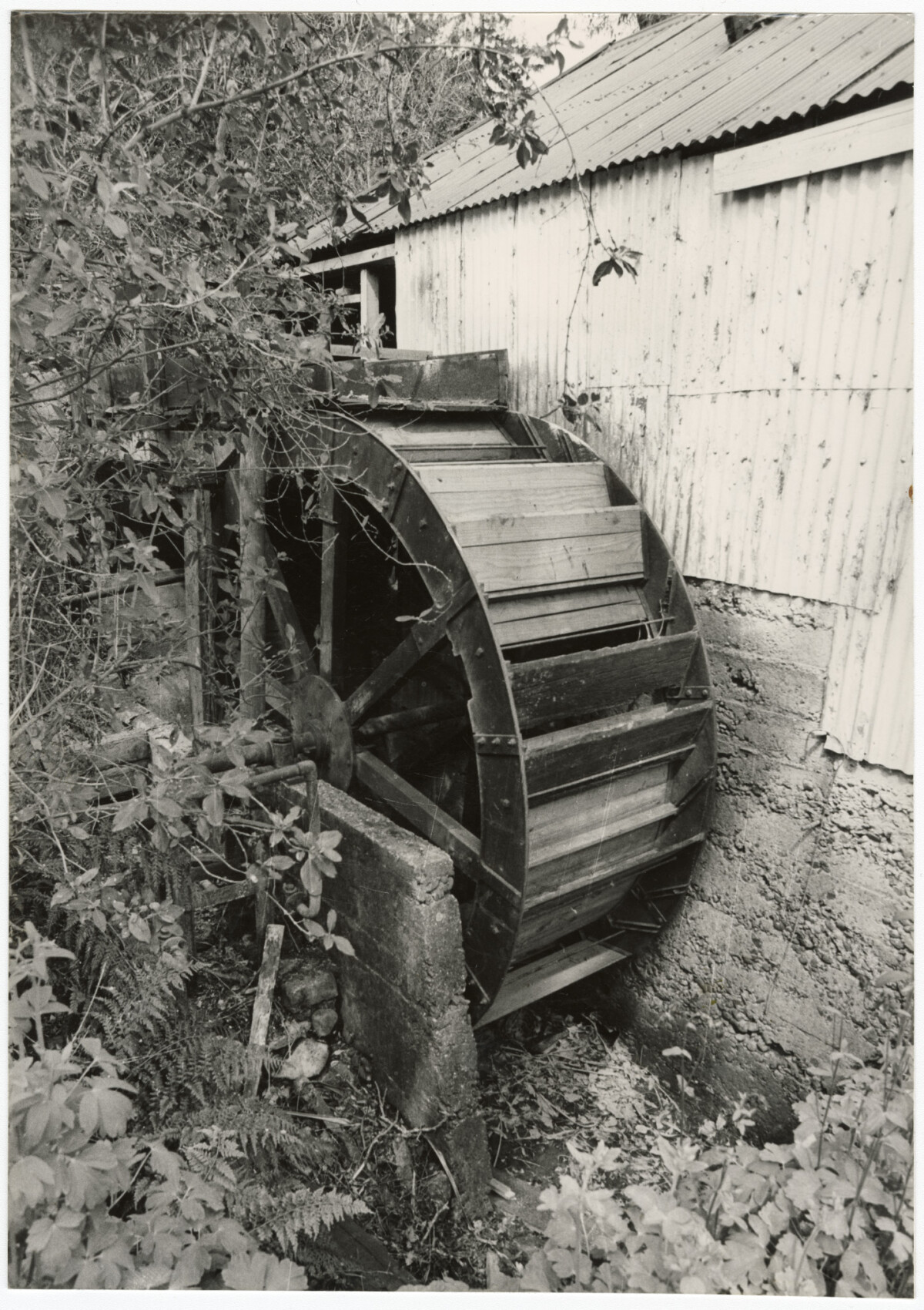 Old water wheel in the overgrown setting of the Orton Bradley homestead at Charteris Bay on the Banks Peninsula.