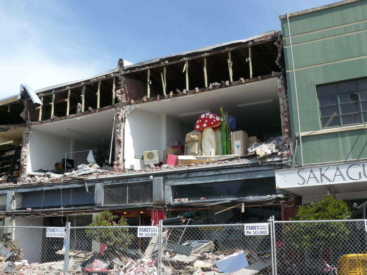 Earthquake damage to shopfronts at Merivale.