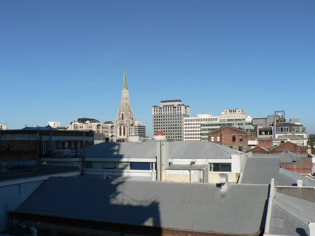 Looking west over the rooftops of north east Cathedral Square.