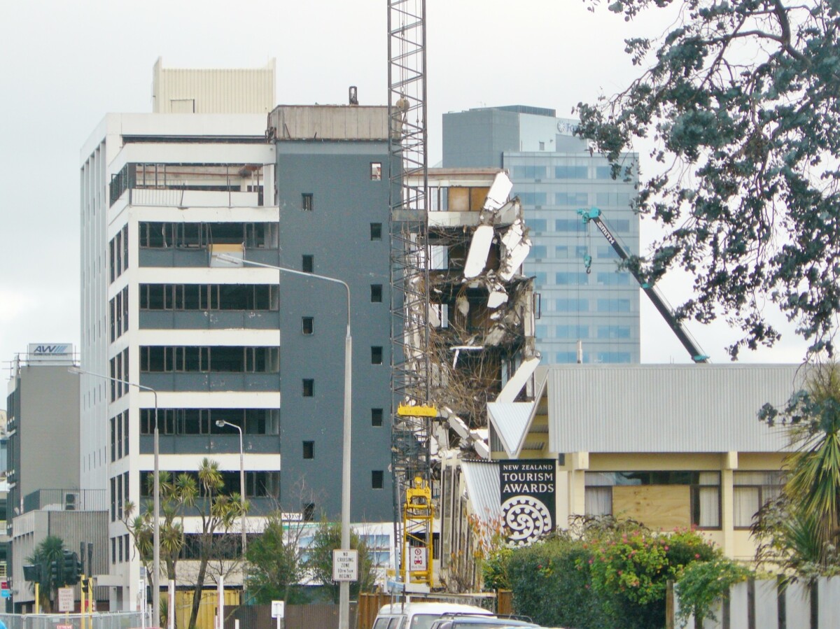 Looking east from 241 Gloucester Street towards the demolition of Manchester Securities House, 221 Gloucester Street.