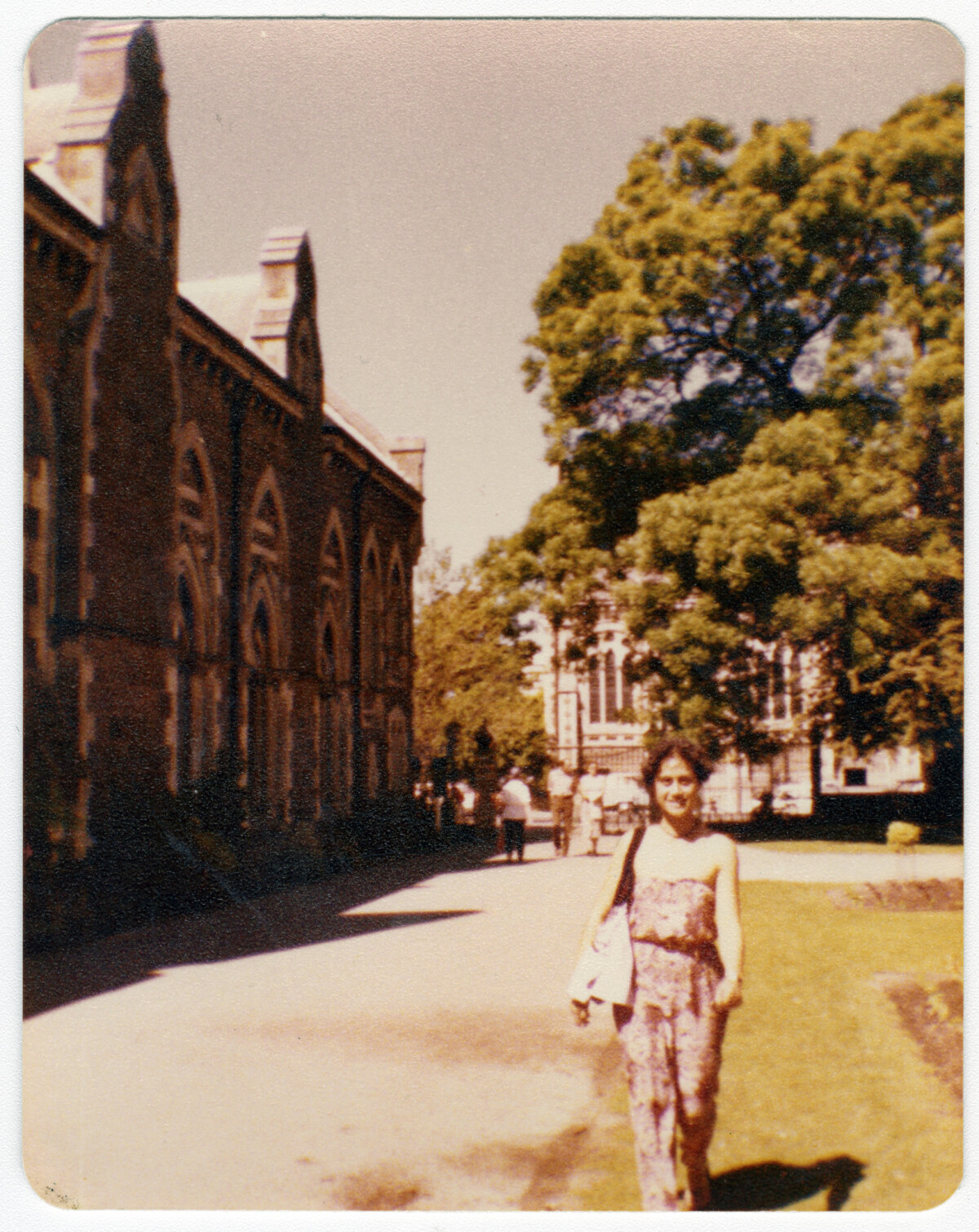 Sarona Ai'ono walking in the Botanic Gardens next to Canterbury Museum and the entrance from Rolleston Avenue.