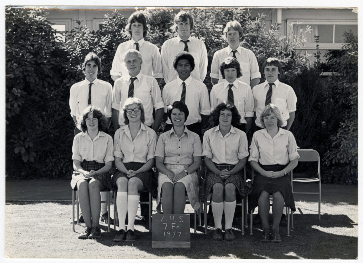 A formal school photograph of Linwood High School form 7 students including Leua Iosefa, second row centre.
