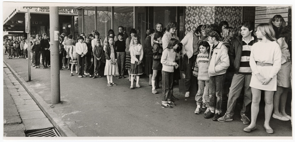 People in Cashel Mall, outside Arthur Barnetts