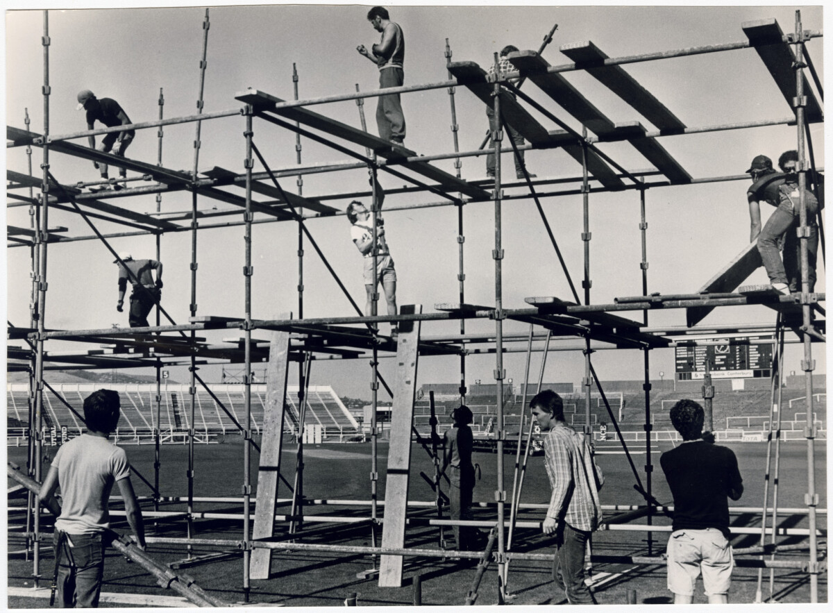 Scaffolding for Dire Straits concert at Lancaster Park