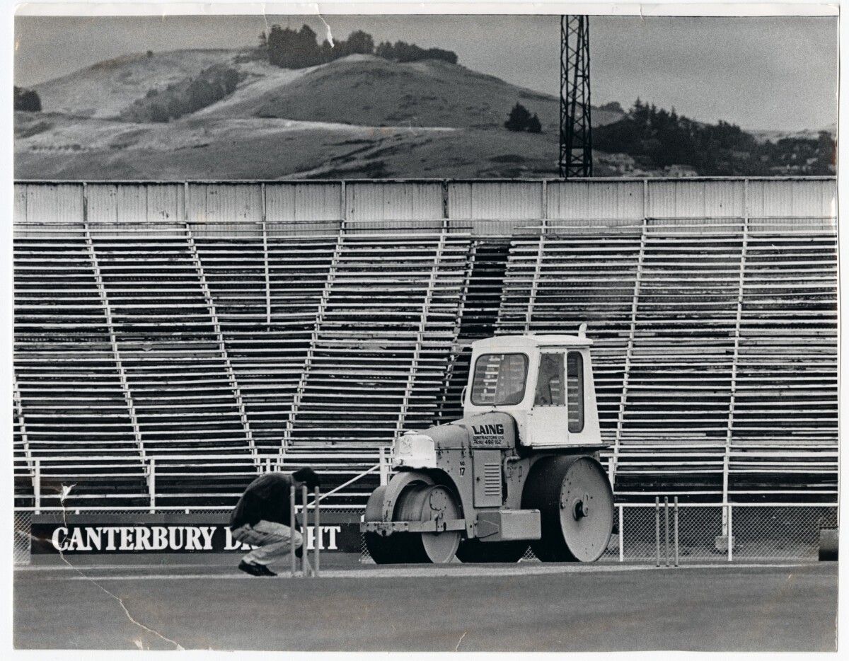 Big Bertha, a motorised heavy roller at Lancaster Park