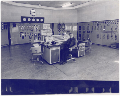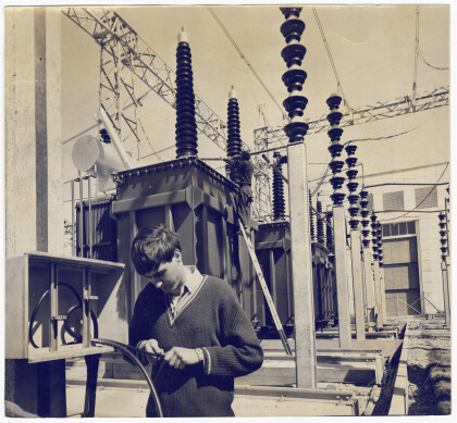 Bruce Tudehope, a second year apprentice, wires the controls for ...