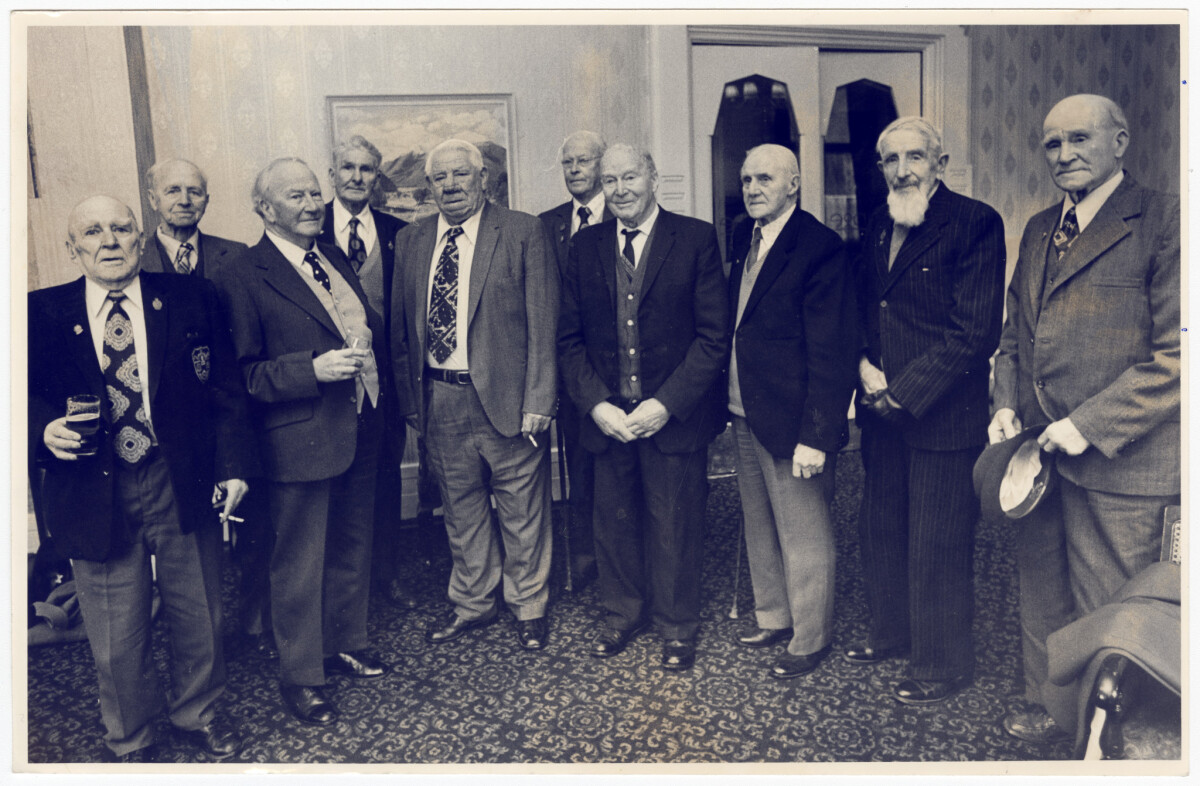 Veterans of the Main Body Association at their last reunion luncheon at the Clarendon Hotel. Pictured are (front, left) J. E. Dales, J. A. Scarborough, W. J. Eastage, H.D. Cooksley, T.L. Franklin, H.S. Ingram and M.E. Jenkins. Second row (from left) A.W. Leaman, the association's president Mr W.A. Pope and Mr Batchelor.
