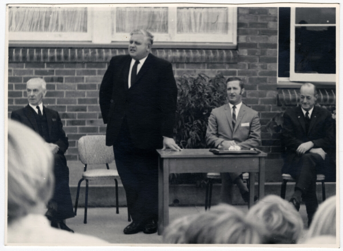 Norman Kirk, Member of Parliament for Sydenham, speaking at Somerfield School during the awarding of the Post Office Savings Bank School Savings Shield.