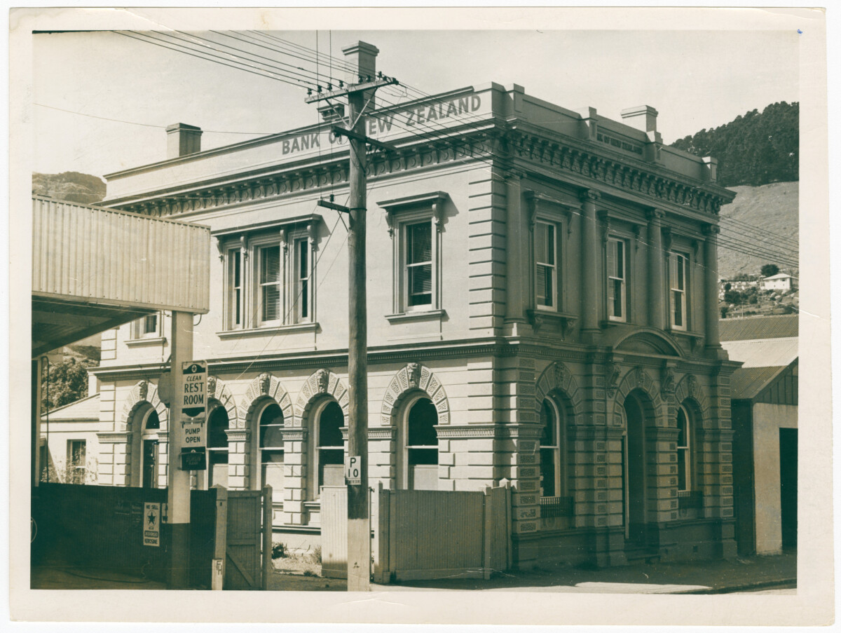 Exterior of the former Bank of New Zealand building on Norwich Quay in Lyttelton following its purchase by the Lyttelton Harbour Board.