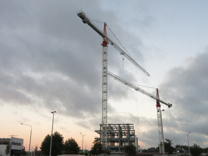 Workmen hoisting a 70,000 litre cream silo into position at the ...