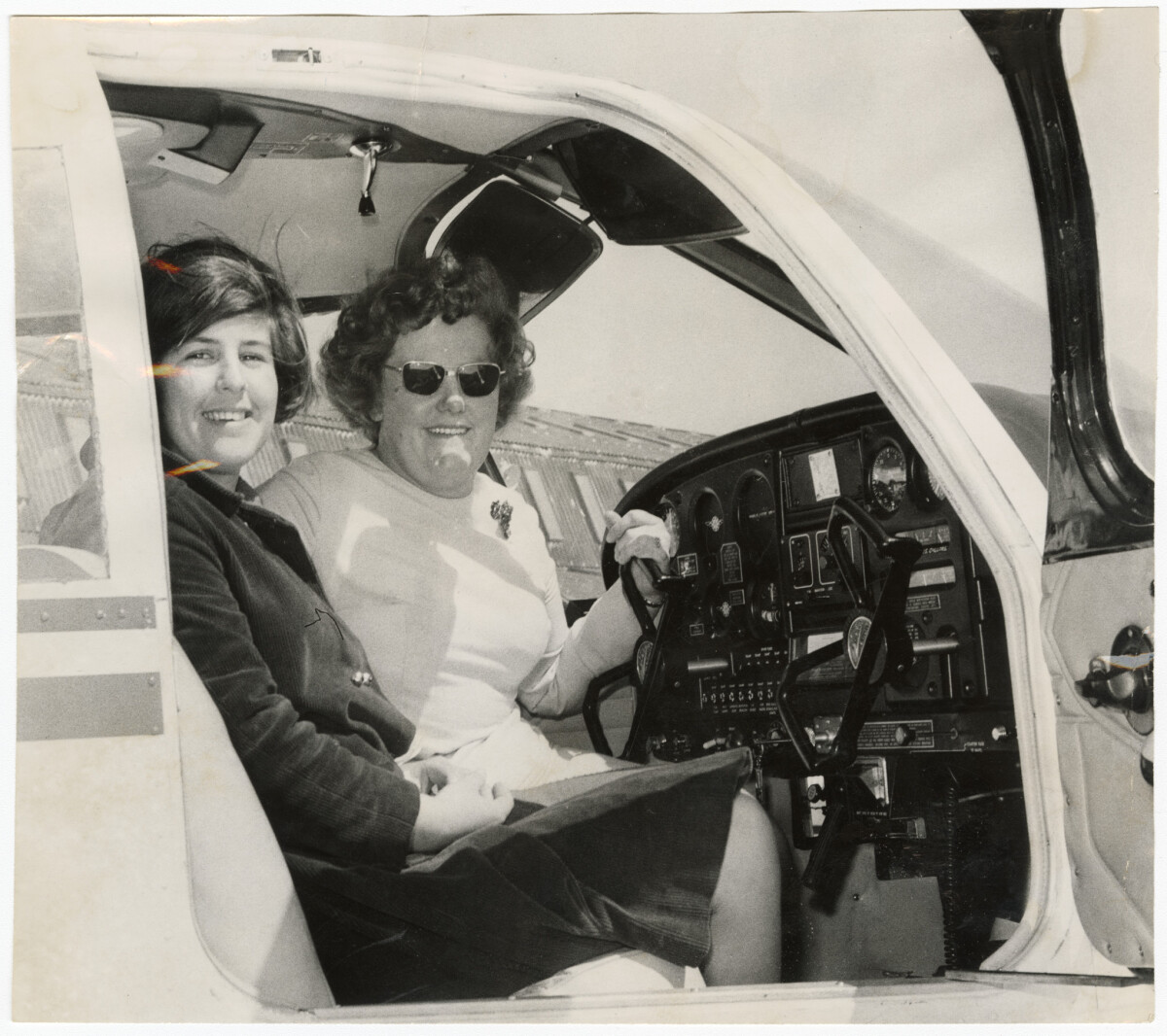 Pauline Tucker, Christchurch Star reporter, and pilot, Rosemary Grose in an aeroplane.