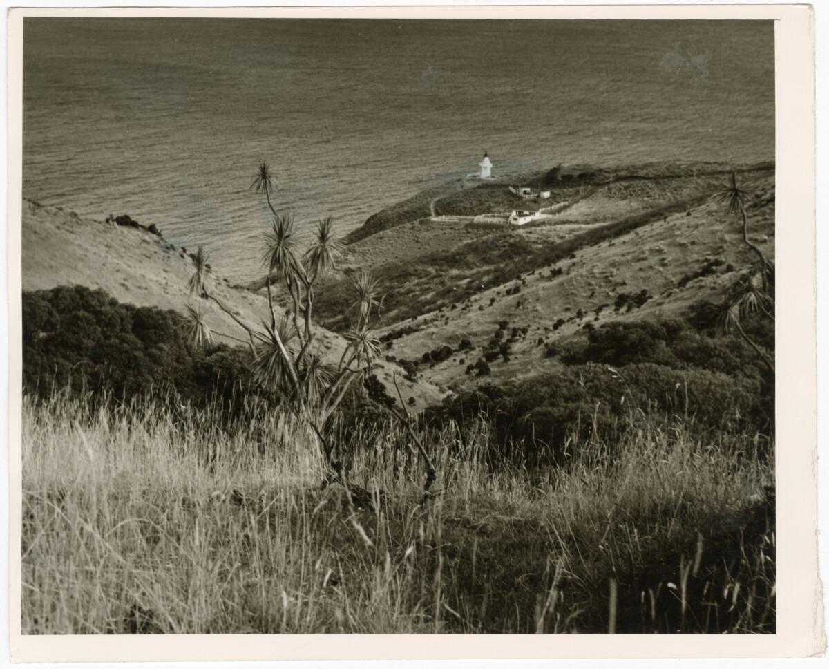 View of Akaroa Head with the lighthouse keeper's cottage.