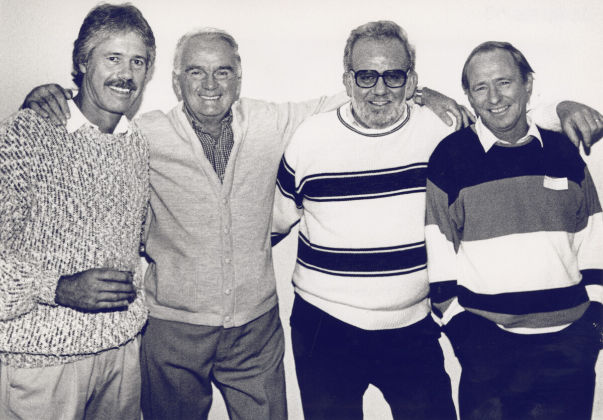 Don Hurst, Jim Cronin, Don Mundell, and Bruce Robertson, former directors of Trans Tours NZ Ltd at an informal reunion.