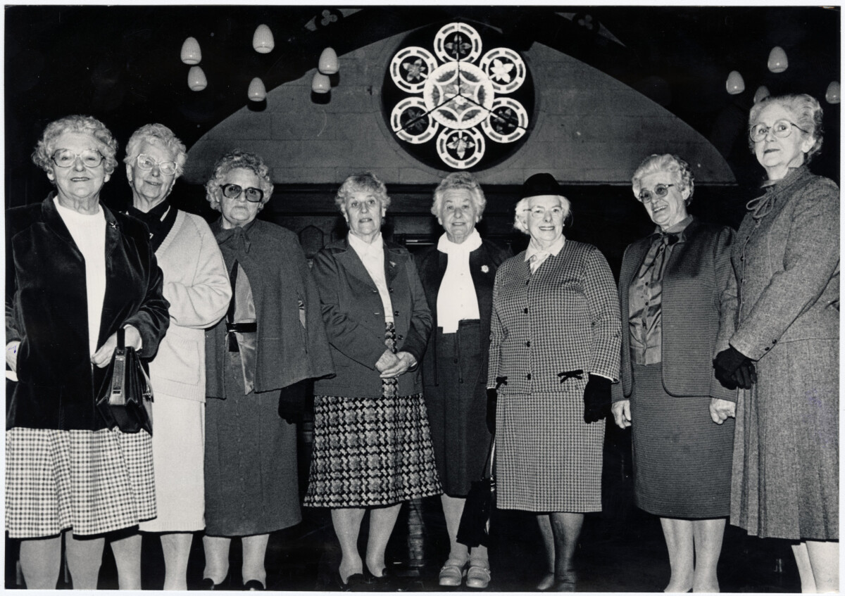 Eight nurses of the class of 1936 gathered in a hospital chapel. Pictured are, from left, Mary O'Neil, Joan Burrows, Ellen Ball, Joy Johnston, Meg McKee, Betty Yandle, Emma Morrison and Majorie Head.
