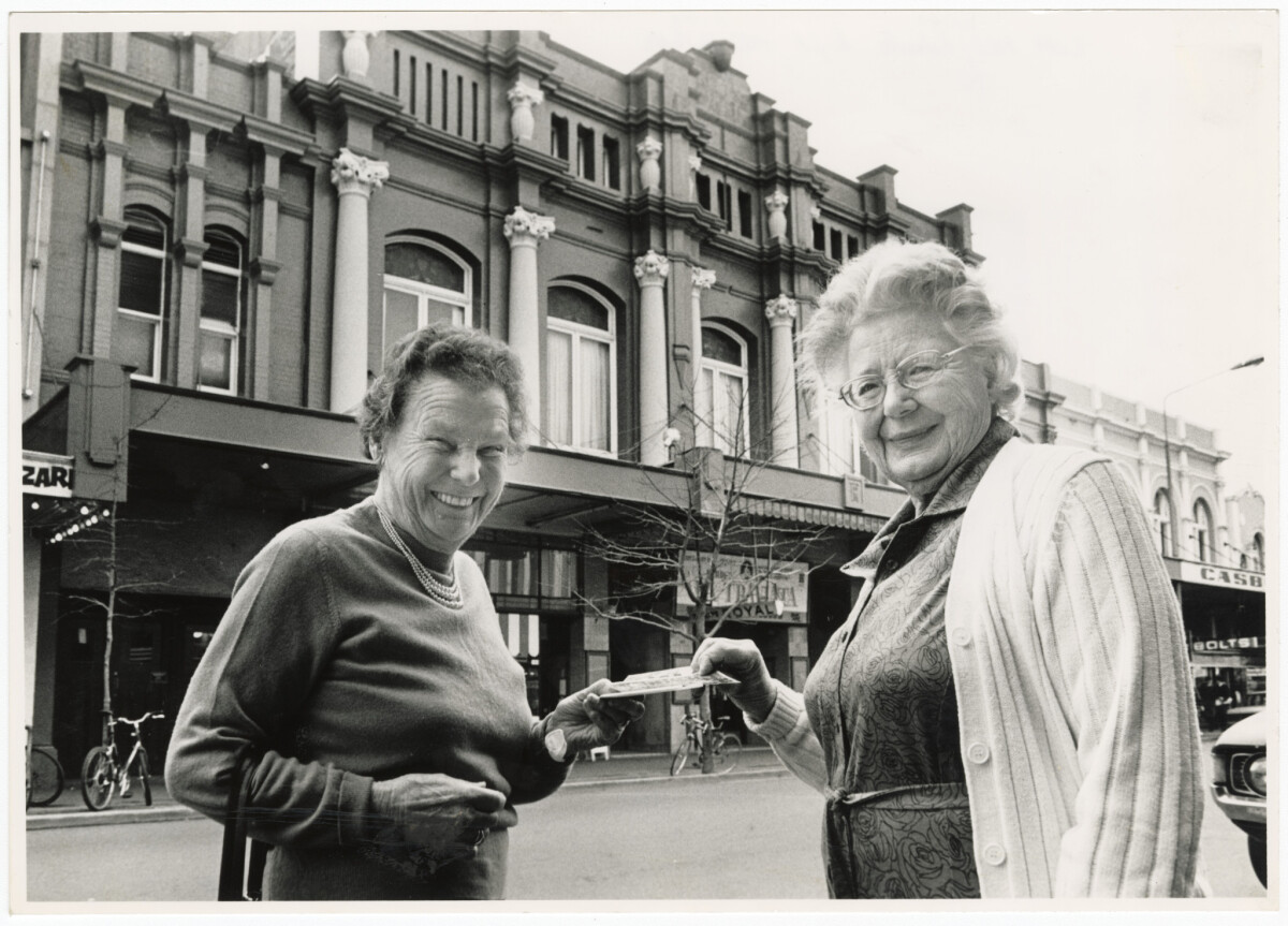 Mavis Roberts and Ruby Watts outside the Theatre Royal