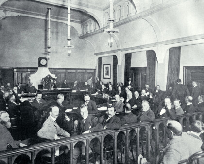 Murray Horton, Jim Andrews and other Progressive Youth Movement members at the Christchurch police station during a reunion where they received an escorted tour through the Police Station museum. Members of the movement had previously been arrested for protests including those at the American Deep Freeze base in Harewood.