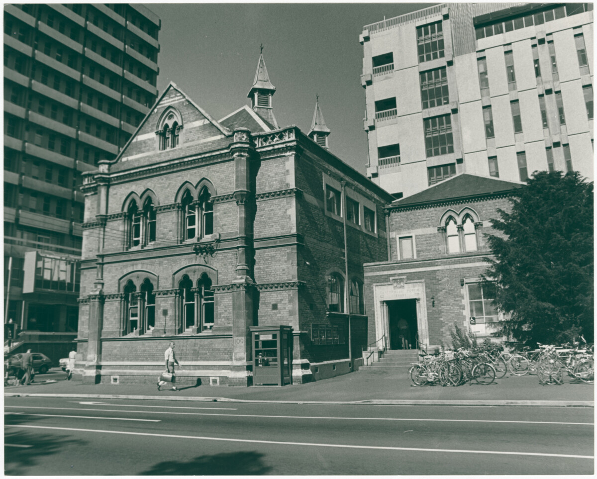 Exterior of the former Canterbury Public Library building on the corner of Cambridge Terrace and Hereford Street.